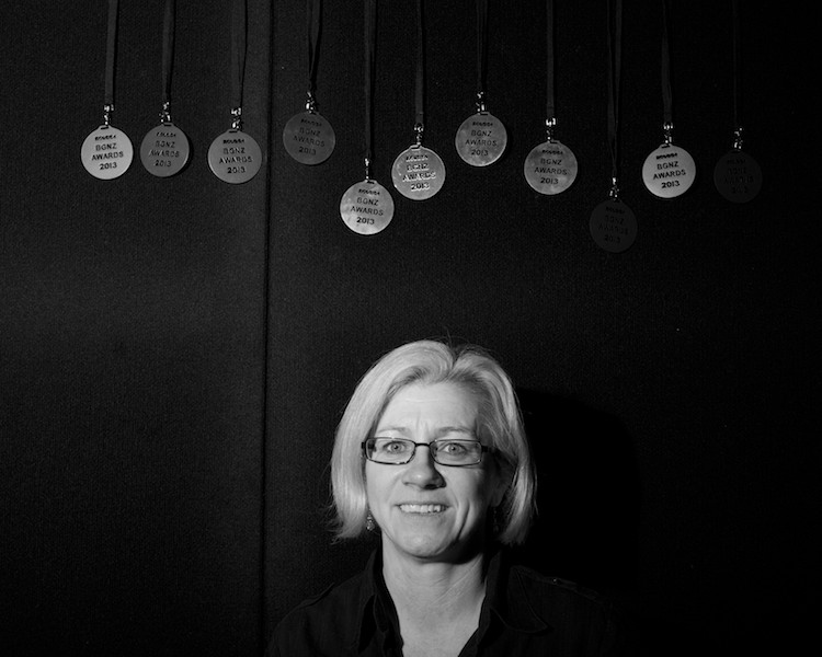 Tracy Banner from the Sprig & Fern with her eleven medals from the Brewers Guild of NZ Awards. Beervana 2013.