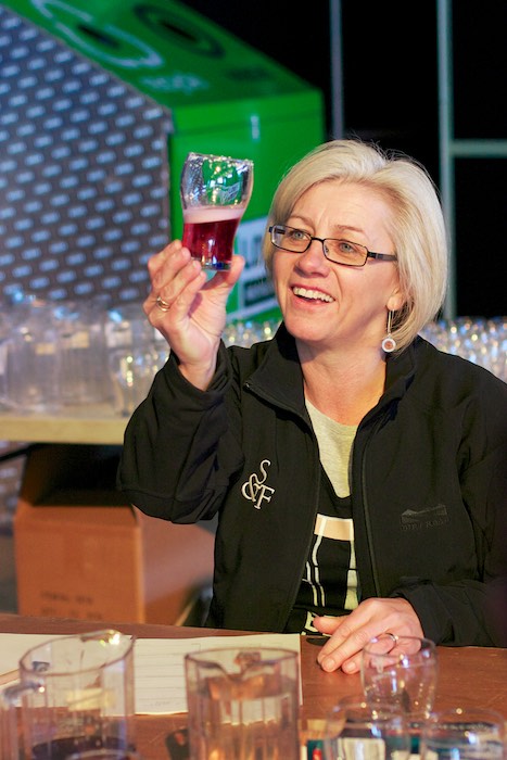 Tracy Banner, head brewer at Sprig & Fern, judges The Beerhive's Lamington beer, their entry in the Media Brew contest.