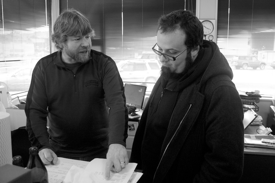 Richard Emerson and Kieran Haslett-Moore discuss the details of the recipe before they get started on brewing Emerson's Regional Special Bitter.