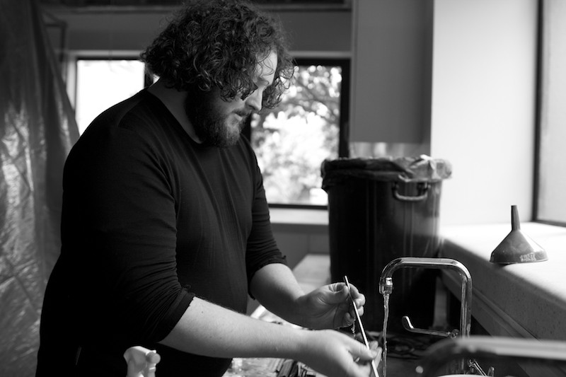 Dan Lord of Funk Estate cleans a beer gun. Massey University, July 14, 2013.