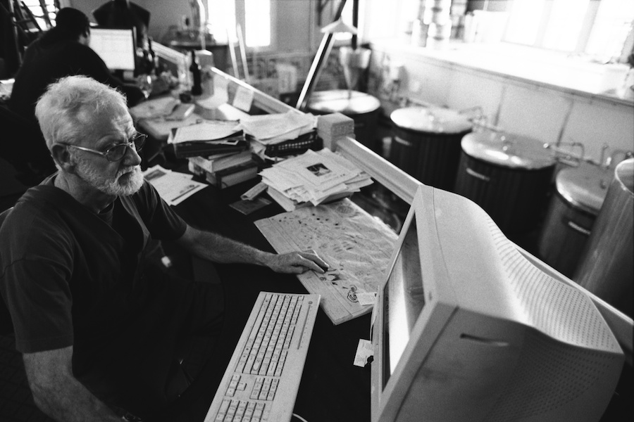 Ian Ramsay, brewer at Galbraith's, catches up on paperwork in the office after the brew.