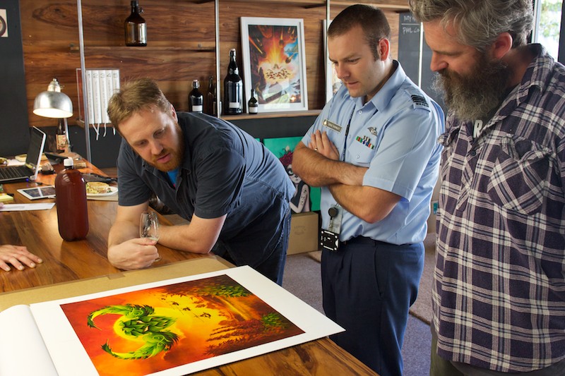 Checking out the artwork for Death From Above, a beer brewed for the Great Australasian Beer SpecTAPular in Melbourne. Garage Project, Aro Street, Wellington, 2013.