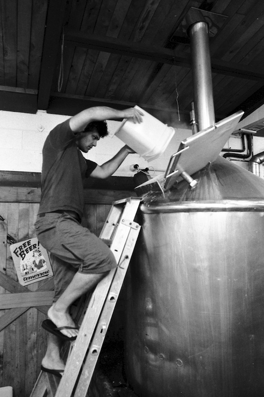 Vincent Hine pours some hops into the kettle at Hallertau Brewery. Riverhead, Auckland, 2010.
