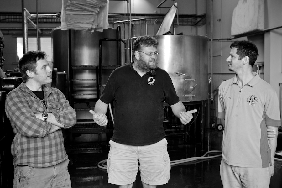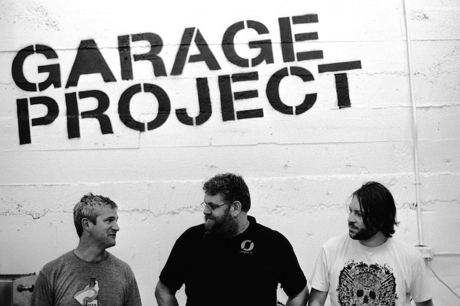 Nøgne Ø and Garage Project collaborate on a beer in Aro Valley. L-R: Pete Gillespie, Kjetil Jikiun (Nøgne Ø), Jos Ruffel. Wellington, 2011.