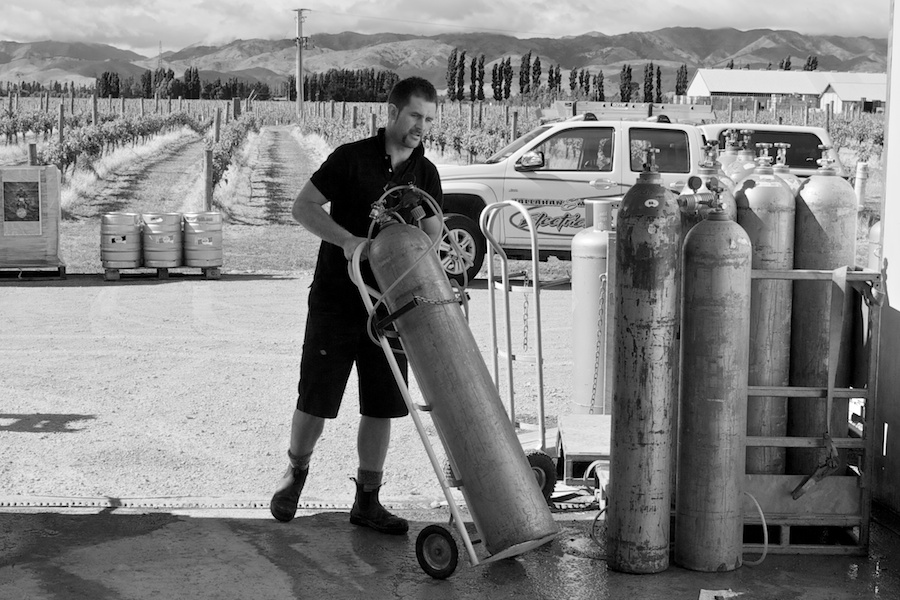 A brewery amongst the vines. Sam, a brewery operator at Moa. Blenheim, 2011.