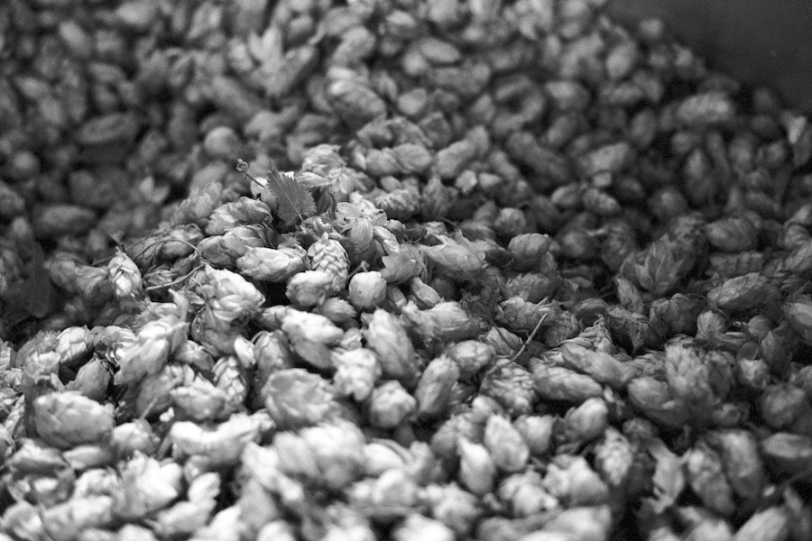 Fresh hops in the hop-back for Macs last Brewjolais. Wellington, 2010.