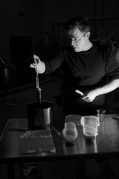 Measuring the gravity of the wort. Kereru Brewing, Upper Hutt, 2013.
