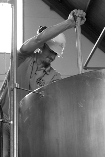 Andy Deuchars from Renaissance works hard to break up a stuck mash.